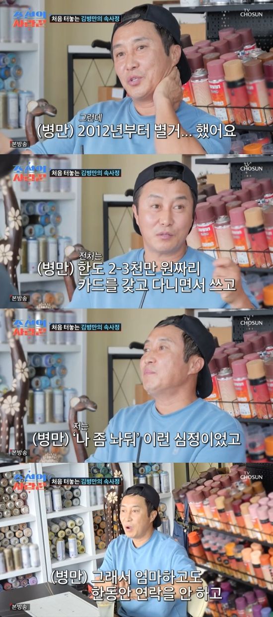 경제권으로 다툼이 심했다고 밝힌 김병만은 "전처가 한도 2,3천만 원 짜리를 쓰고 매달 현금을 뺐다. 주변에서 저한테 '공인인증서를 왜 넘겼어?'라고 하는데 안 넘기면 괴로우니까 넘겼다. 정말 가져갈 때까지 끊임없는 전화가 왔다. '나 좀 놔둬'라는 심정이었다. 감정의 롤러코스터를 정말 많이 탔다"고 고백했다.