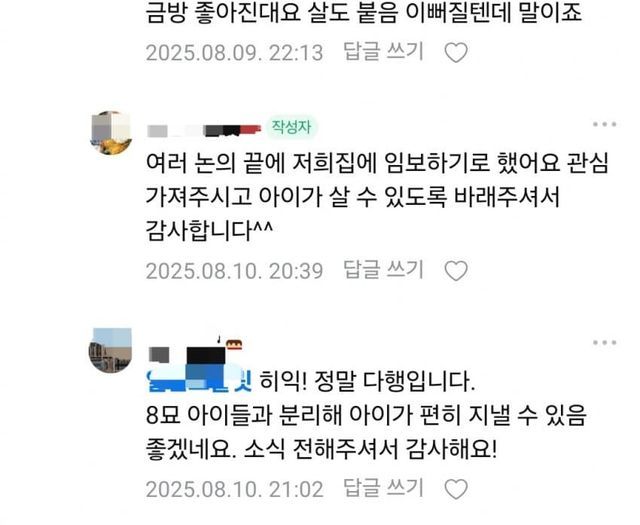 그치만 남편 잘 구슬려서 본인 집에서 임보하는데 성공하심