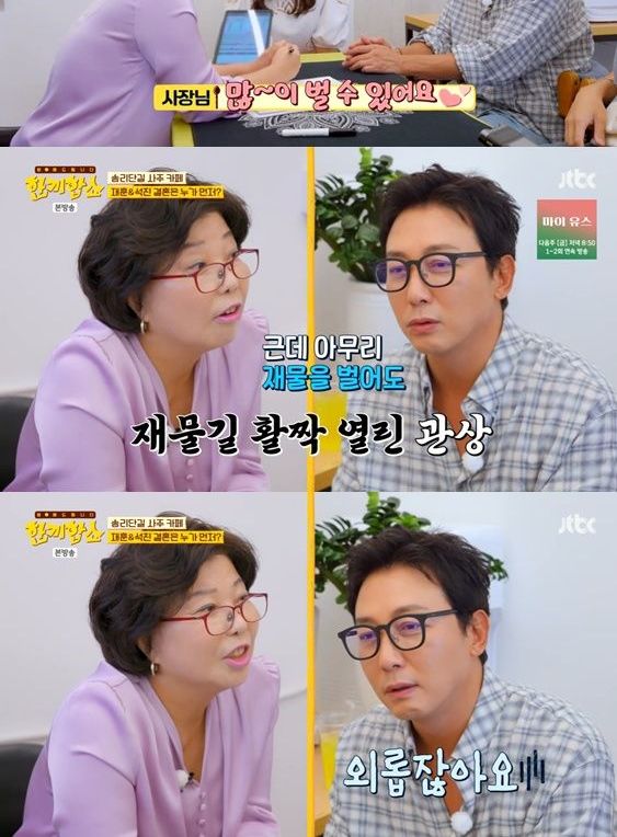 특히 역술가의 "배우자를 한 배우자로 이어가기 어려울 수 있다"는 발언에 탁재훈은 "네?"라고 당황하더니 "무슨 말씀이냐. 그래서 그렇게 (이혼) 했지 않냐"고 말해 웃음을 안겼다.