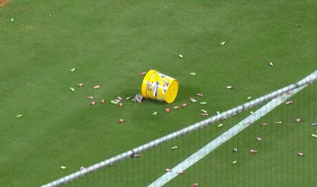 콘트레라스는 껌이 들어 있는 통을 던졌다. 동료들에게 붙잡혀 더그아웃으로 끌려가다가 던진 배트가 브라운 타격코치의 팔을 가격하기도 했다. 중계 화면은 격양된 토마스 주심을 비추기도 했다.