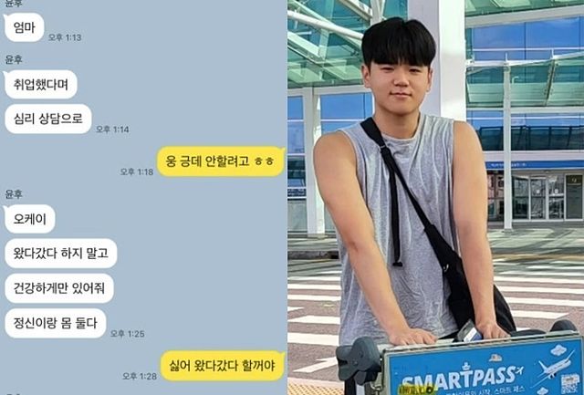 윤후는 엄마에게 “잘 갔다 올게”, “건강만 챙겨줘”라는 메시지를 보내며 한국을 떠나기 전 엄마를 걱정하는 효심 가득한 모습을 보였다. 또 “왔다 갔다 하지 말고 건강하게만 있어 줘. 정신이랑 몸 둘 다”라며 취업한 엄마에게 건강 돌보기에 집중하라고 말했다.