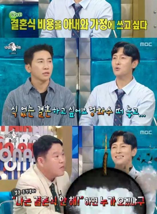 결혼식을 안 하려는 이유를 묻자 "필요없는 문화 같다. 스몰 웨딩을 해도 돈이 많이 들지 않냐. 그냥 그 돈으로 아내와 가정에 쓰는 것이 나은 것 같다. 그냥 둘이서 정화수 떠놓고..."라고 했다.