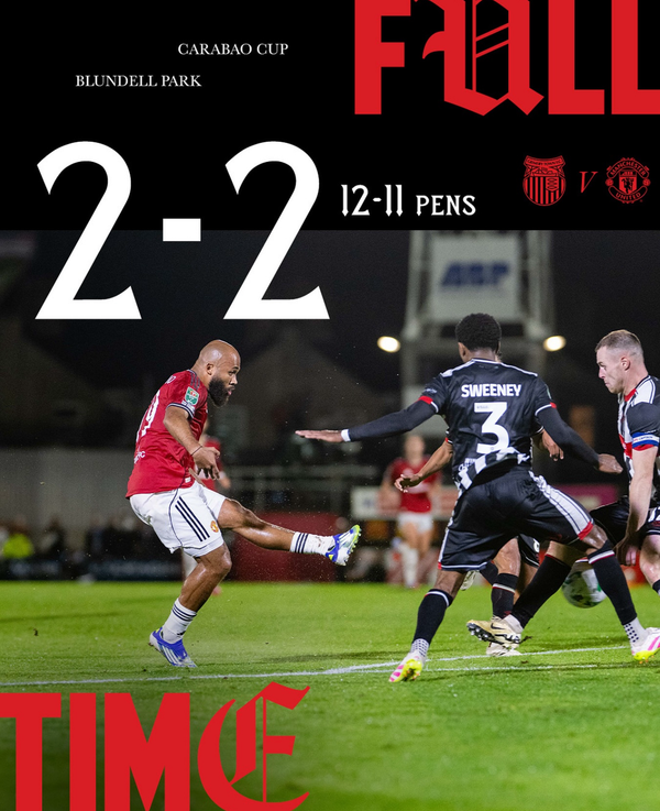 28일(한국시간) 양극 클리소프스의 블런델 파크에서 2025-2026 잉글랜드 카라바오컵(리그컵) 2라운드를 치른 맨유가 그림스비타운과 정규시간에 2-2로 비긴 뒤 승부차기에서 11PK12로 탈락했다.