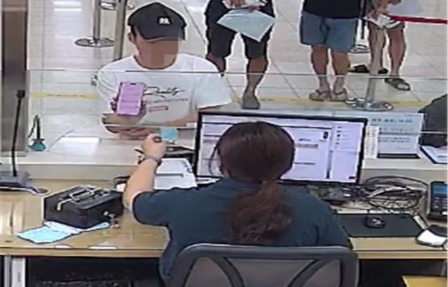 불법체류하던 중국인 A씨가 지난달 31일 제주항에서 매표소 직원에게 위조된 영주증 제시하고 있다. 제주출입국·외국인청 제공