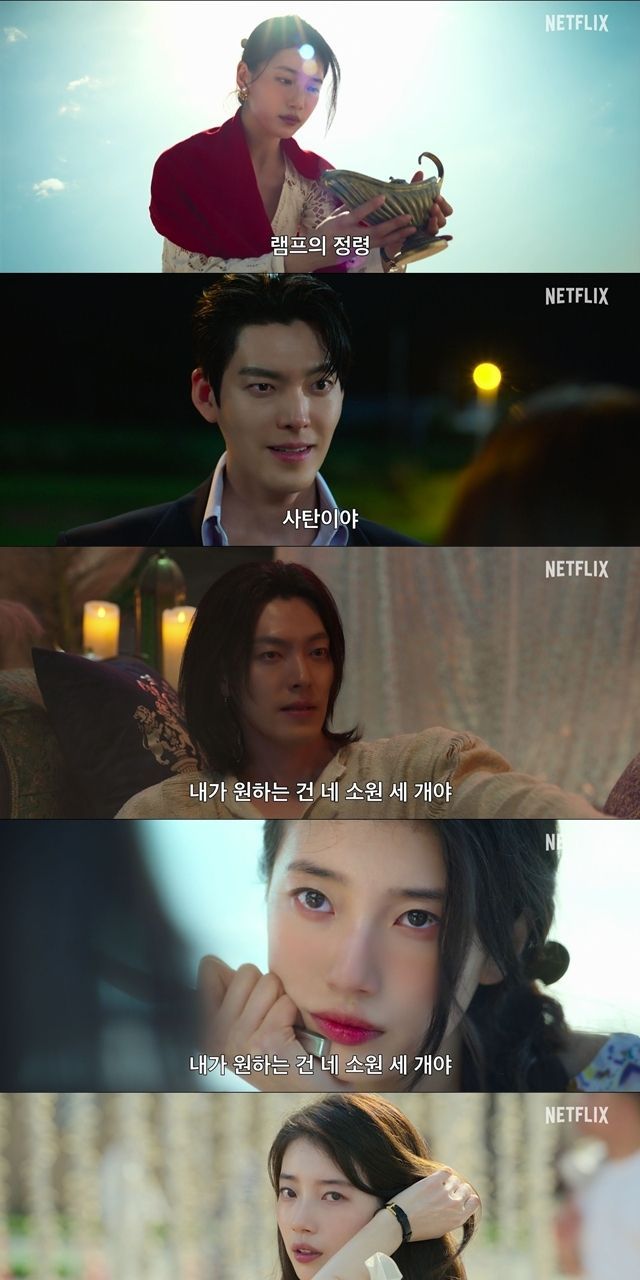 오는 10월 3일 추석을 앞두고 공개되는 ‘다 이루어질지니’는 천여 년 만에 깨어난 경력 단절 램프의 정령 지니(김우빈)가 감정 결여 인간 가영(수지)을 만나 세 가지 소원을 두고 벌이는 스트레스 제로, 판타지 로맨틱 코미디다. 세상 물정 모르는 지니와 감정을 모르는 가영이 벌이는 아슬아슬한 내기가 어떤 기상천외한 서사를 펼쳐낼지 기대를 모은다. 김우빈, 수지의 판타지 같은 재회에 이어 안은진, 노상현, 고규필, 이주영 등 독창적 세계관을 완성할 ‘소원 성취’ 라인업에 관심이 쏠리고 있다.