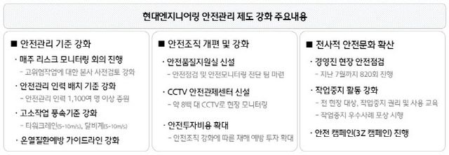 안전관리 제도 강화 주요내용. © 현대엔지니어링