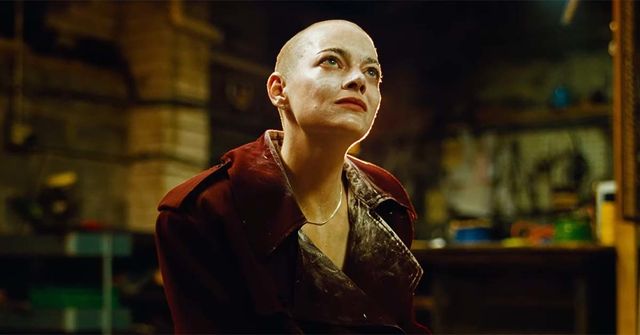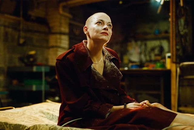 에마 스톤 삭발 모습. 영화 '부고니아'의 한 장면.