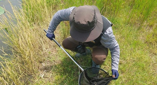 멸종위기종 금개구리 이주를 위한 포획 장면.한국농어촌공사는 새만금 국가산업단지 개발 과정에서 대체 서식지로 이주한 멸종위기 야생생물 2종에 대해 현장 점검을 시행한다고 최근 밝혔다. / 한국농어촌공사 제공