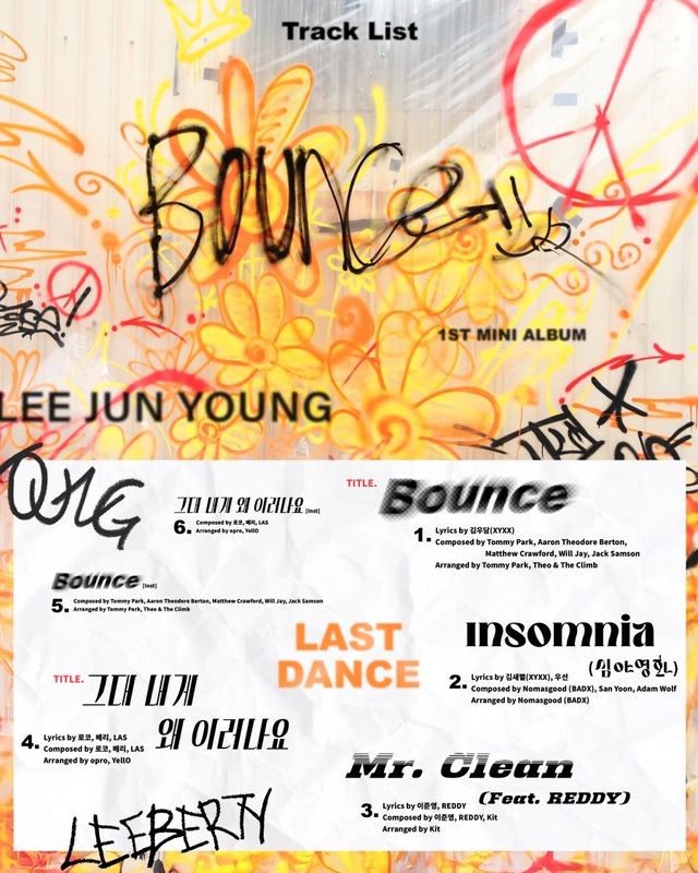 이 외에도 ‘인썸니아(Insomnia) (심야영화)’, ‘미스터 클린(Mr. Clean) (Feat. REDDY)’ 그리고 더블 타이틀곡 ‘바운스’와 ‘그대 내게 왜 이러나요’의 인스트루멘탈(반주) 트랙까지, 이준영의 더 깊어진 음색과 단단한 가창력을 확인할 수 있는 곡들이 수록됐다.