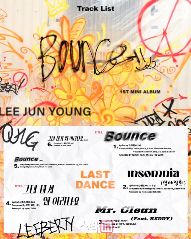 이날 공개된 트랙리스트에 따르면 앨범에는 더블 타이틀곡 ‘바운스’(Bounce)와 ‘그대 내게 왜 이러나요’를 비롯해 총 6개의 트랙을 수록했다. 수록곡 중 ‘미스터 클린’(Mr. Clean)은 이준영이 작사, 작곡에 직접 참여한 곡이다.
