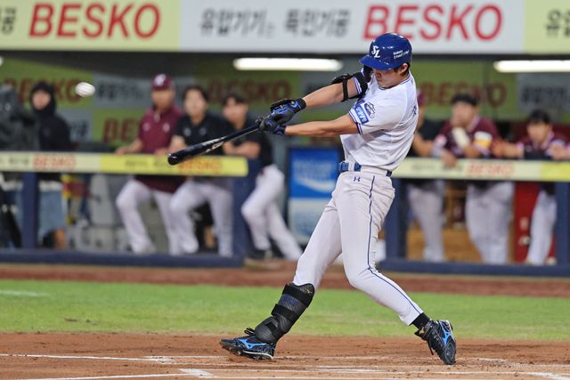 구자욱은 팀이 0-1로 뒤진 1회말 김지찬의 안타와 김성윤의 몸에 맞는 볼로 만들어진 무사 1, 2루에 첫 타석을 맞았다.