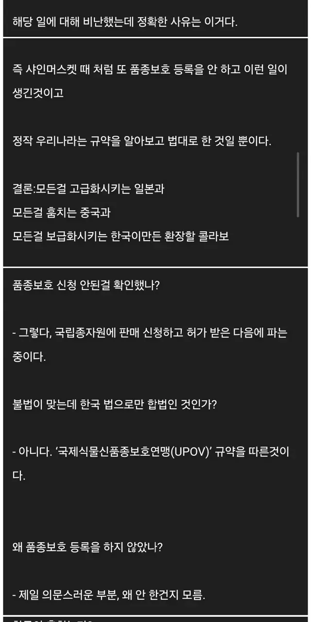 3. 한국 중국에서 포도 묘목 구매 후 품종보호확인 하였으나 안된거 확인