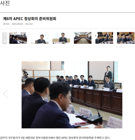 국무조정실 누리집 국무종리 사진 화면 갈무리 |