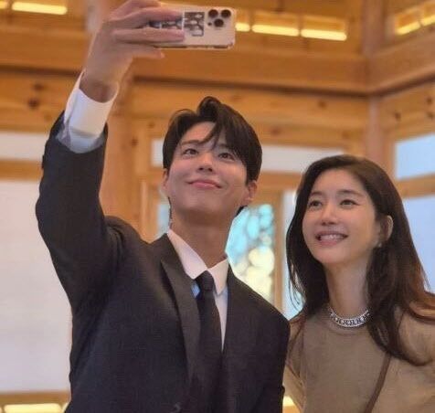 배우 박보검과 김희영 티앤씨재단 이사가 서울 종로구 삼청동 선혜원에서 기념 사진을 촬영하고 있다. (사진=김희영 인스타그램 캡처)