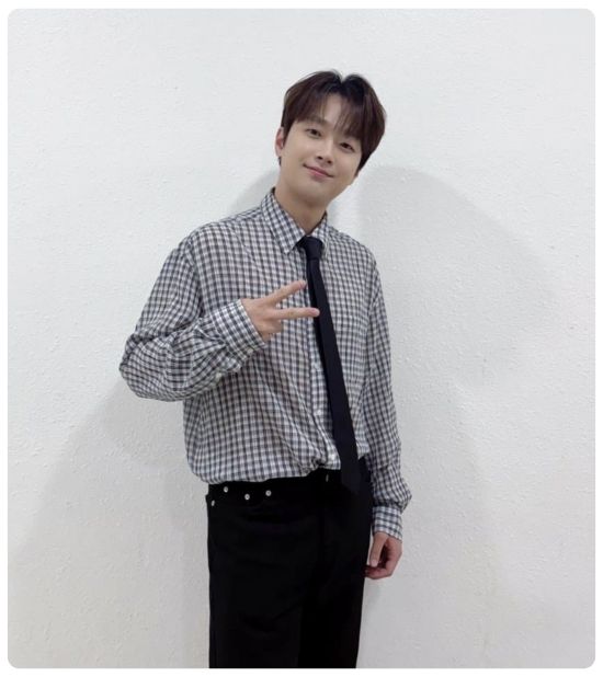 특히, 블랙 체크 셔츠에 블랙 타이를 매치해 댄디한 매력을 뽐낸 그의 비주얼은 팬클럽 '찬스'의 시선을 끌었다.