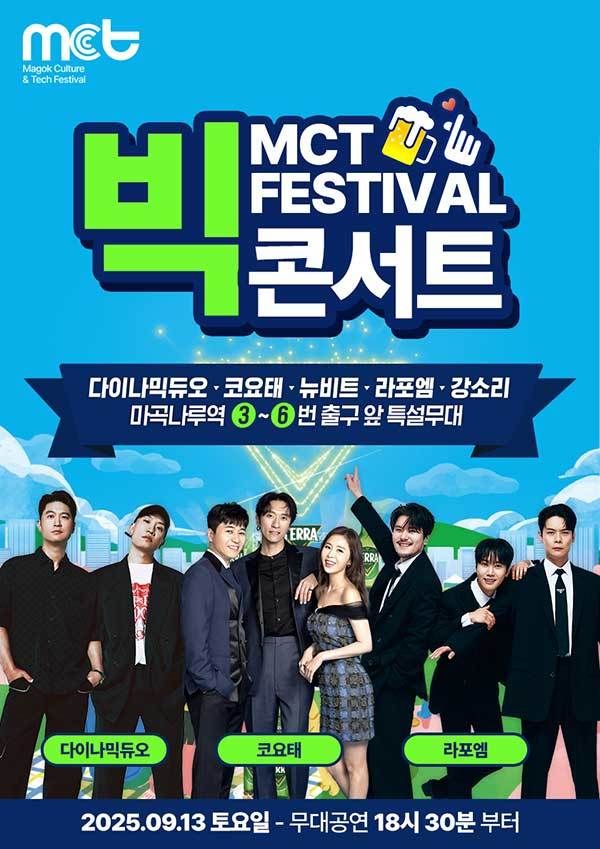 국내 최초로 문화와 과학기술이 결합된 글로벌 축제 ‘제1회 MCT페스티벌’이 9월 12일~14일 서울 강서구 마곡에서 개최되는 가운데 인기 가수와 아이돌 그룹이 출연하는 ‘MCT 빅 콘서트’ 무대가 마련된다.