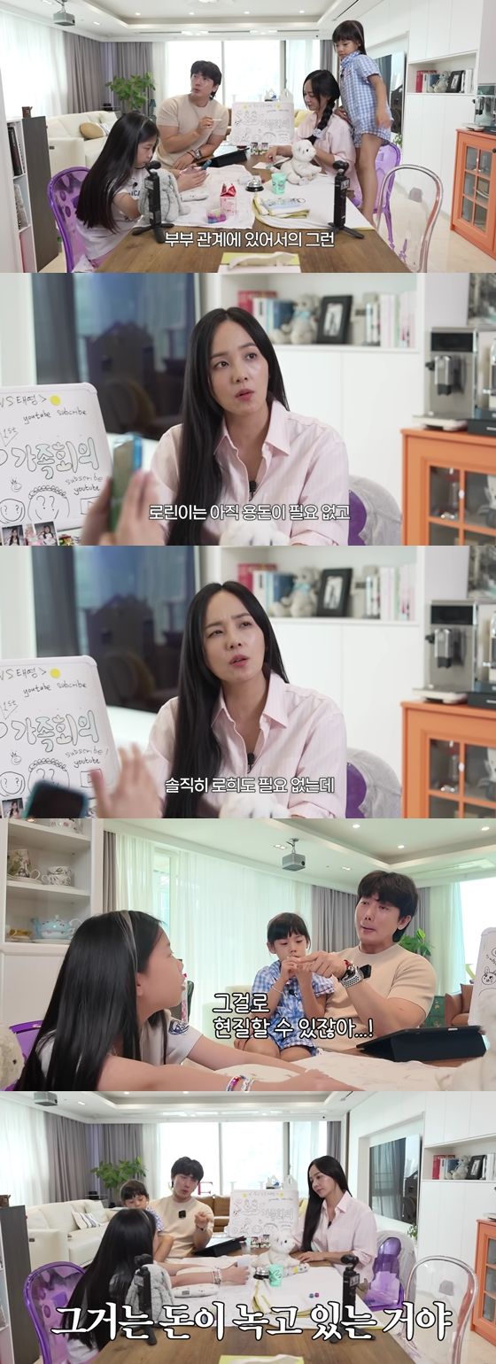 영상에서 유진, 기태영 부부는 두 딸과 함께 유튜브에 대해 가족회의를 했다.