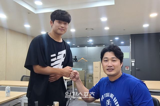 지난 2022년 10월 수원에서 우상 오승환과 만난 박영현(왼쪽). KT 제공