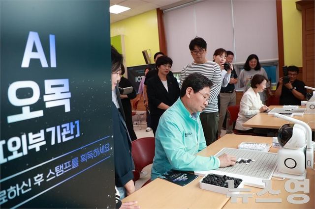 이 시장은 AI 오목 게임에서 인공지능을 상대로 약 4분 간 접전을 벌이다 승리해 지켜본 이들의 감탄을 자아냈다.