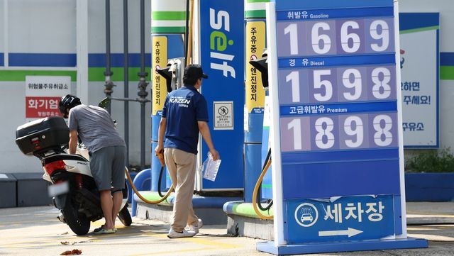 서울 시내 한 주유소에 가격 현황판이 놓여 있다 / 연합뉴스