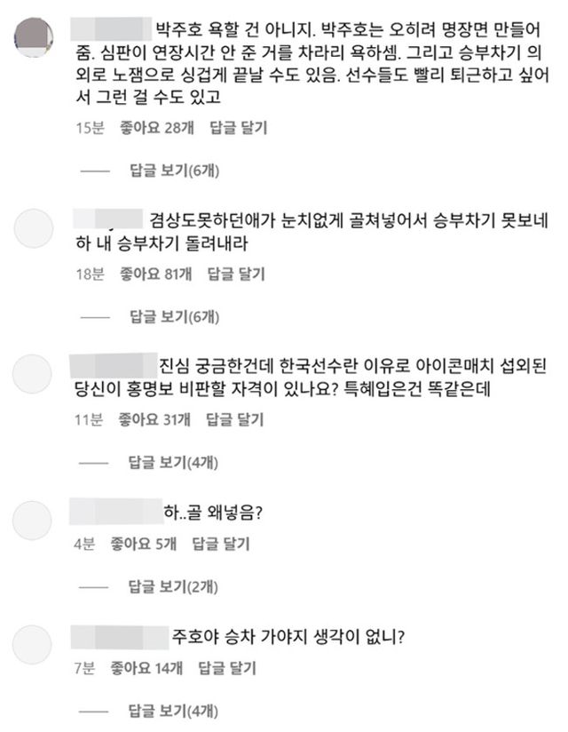 그런데 경기가 끝난 뒤 몰상식한 일부 축구 팬들이 박주호의 개인 SNS 계정에 악플을 달아 논란이 되고 있다. 일부 팬들은 박주호의 극장골로 인해 승부차기가 진행되지 않은 것에 불만을 품었다. 월드클래스 선수들의 경기에 이어 또 다른 재미를 선사할 수 있는 승부차기가 무산된 것은 아쉬울 수 있다. 그러나 이 아쉬움이 박주호를 향한 악플로 나타나고 있는 것은 있을 수 없는 일이다.