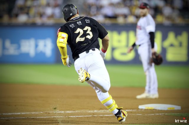 타율은 리그 4위, 출루율은 압도적 1위(0.440)다. 장타율도 리그 2위(0.618). 팀 내에선 안현민보다 안타(115개)와 타점, 득점(65개), 홈런(20개) 모두 1위다.