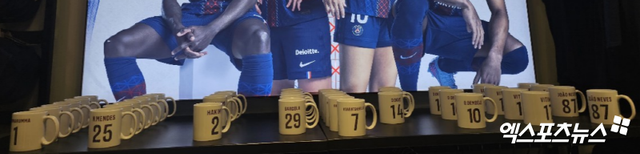 누누 멘데스(25번), 아슈라프 하키미(1번), 브래들리 바르콜라(29번), 크바라츠헬리아(7번), 두에(14번), 뎀벨레(10번), 비티냐(17번), 주앙 네베스(87번) 등의 이름과 등번호 적인 머그컵이 전시됐고, 심지어 얼마 전 맨체스터 시티로 이적한 골키퍼 잔루이지 돈나룸마(1번)도 있었지만 이강인의 것은 없었다.