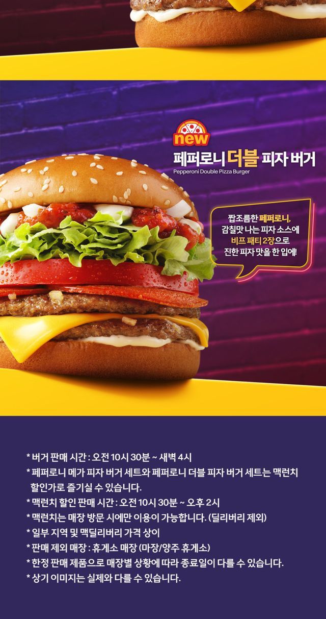 2022년에 출시했었다던 페퍼포니피자버거를 더블사이즈 메가사이즈로 출시하나 봅니다...