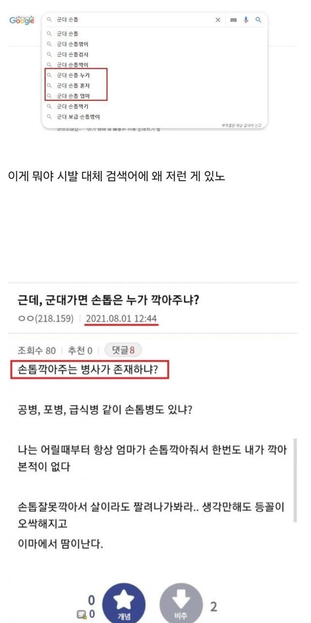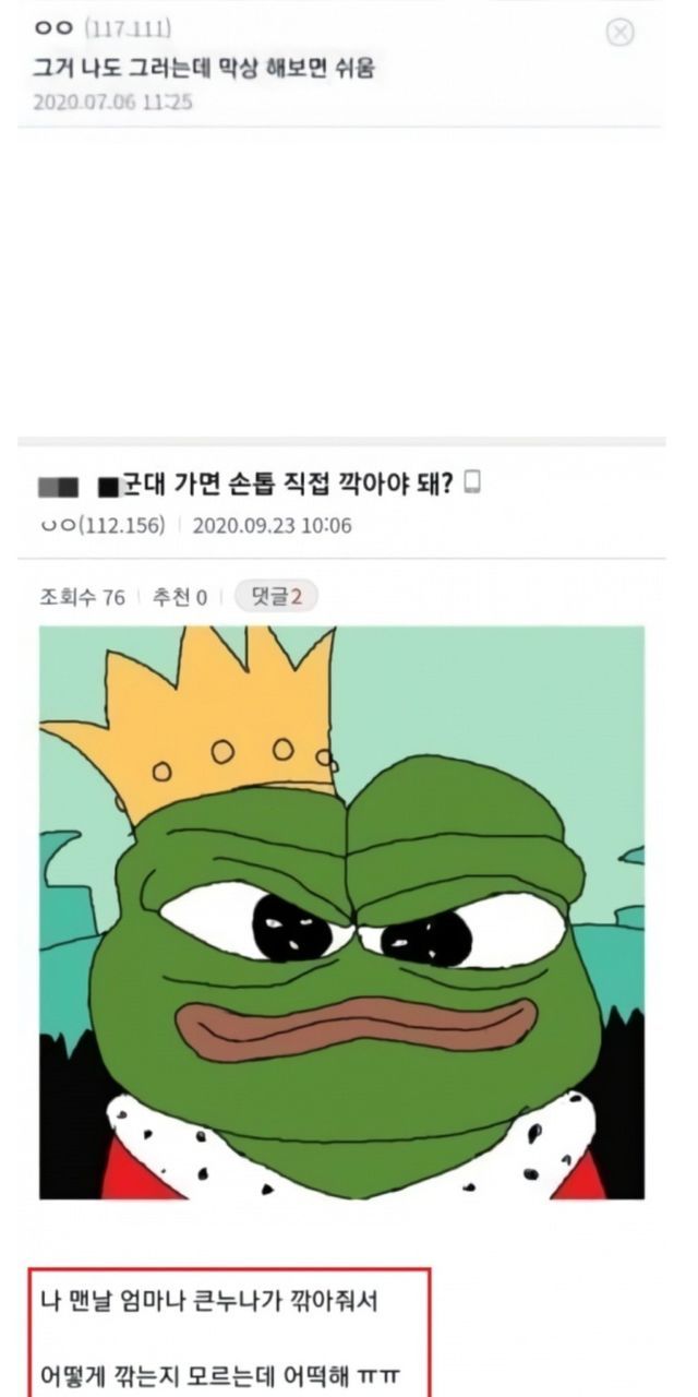 근데 군대 가면 손톱은 누가 깎아줘?