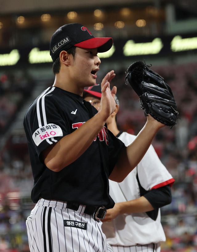 LG 트윈스 신인 투수 김영우(20)가 아웃카운트 4개를 모두 삼진 처리하는 위력을 자랑했다.