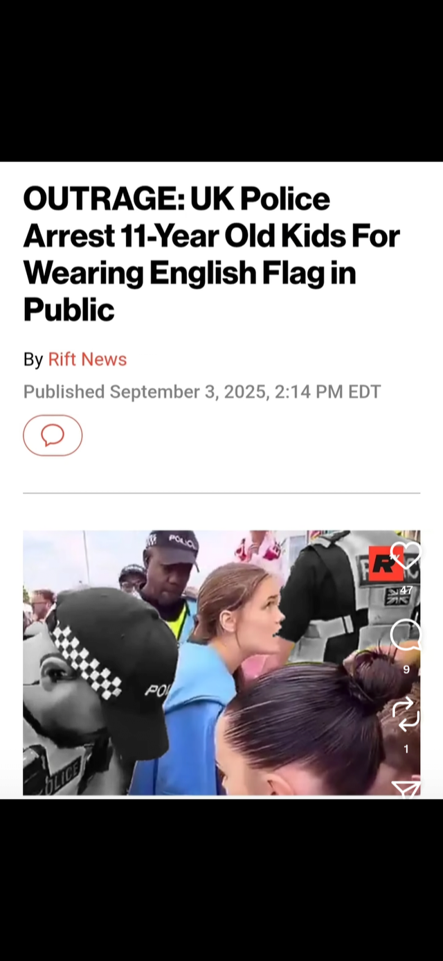 분노: 영국 경찰이 공공장소에서 잉글랜드 국기를 걸고 다녔다고 11살짜리들을 체포하다