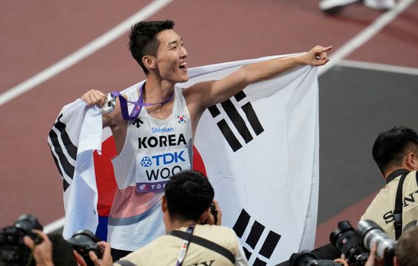우상혁은 첫 금메달은 실패했으나, 한국 육상 최초로 세계선수권대회에서 메달 2개를 따내는 새 역사를 썼다.