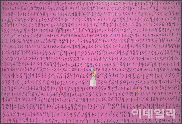 다른 한 축은 ‘암시적 기호학’이라 불린 숫자의 세상이다. 1부터 10까지 무수히 반복했지만 의미도 상징도 없다. 슬쩍 기대했을 암호도 물론 아니다. “인간 삶과 감정에 스민 가장 기초적인 언어”를 나열했다니. 칠판에 분필로 써내려갔나 싶지만 물감을 쌓은 뒤 거꾸로 긁어낸 숫자란 게 특별한 점이라고 할까.