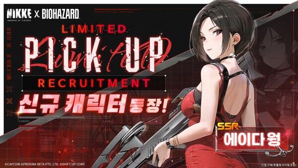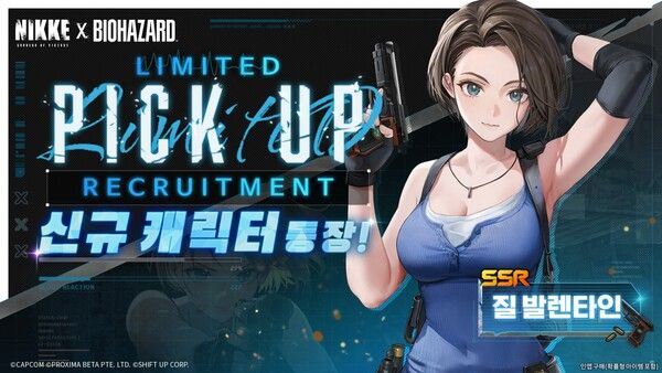 관련해 ‘니케’에는 그중에서도 ‘바이오하자드’의 인기 여성 캐릭터를 대표하는 인물 3인이 등장할 예정이다. SSR 픽업 캐릭터로 ‘에이다 웡’과 ‘질 발렌타인’이 예고됐으며, 배포로 등장하는 SR 캐릭터로는 ‘클레어 레드필드’가 등장한다.