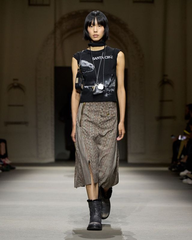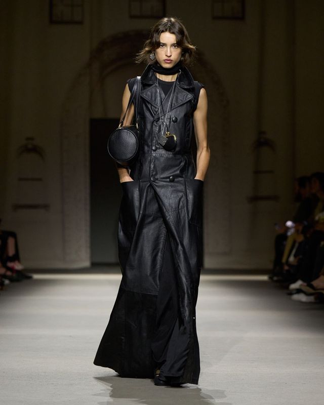 이번 시즌의 가방들은 불필요한 장식을 덜어내고, 소재가 가진 본질적인 힘을 전면에 드러냅니다. 아이코닉한 태비백은 클러치로 변형되어 부드러운 곡선을 강조했고, 코치의 시그니처인 키스락 하드웨어는 이번 컬렉션을 관통하는 중심축이 되었습니다. 원통형의 키스락 배럴백은 페블 가죽, 스웨이드, 메탈릭 포일, 데님 등 서로 다른 질감을 통해 뉴욕의 다층적인 표정을 코치의 헤리티지에 그대로 녹여냈습니다.