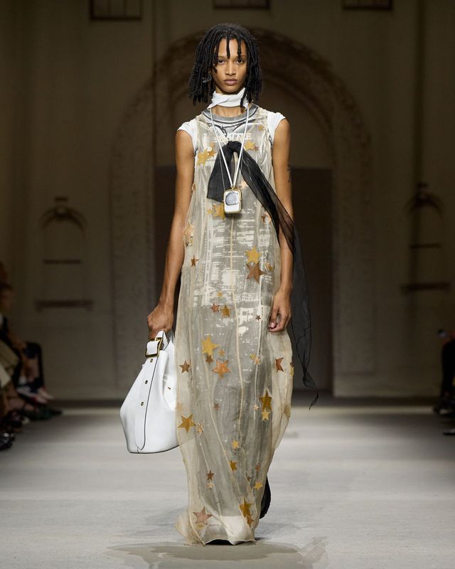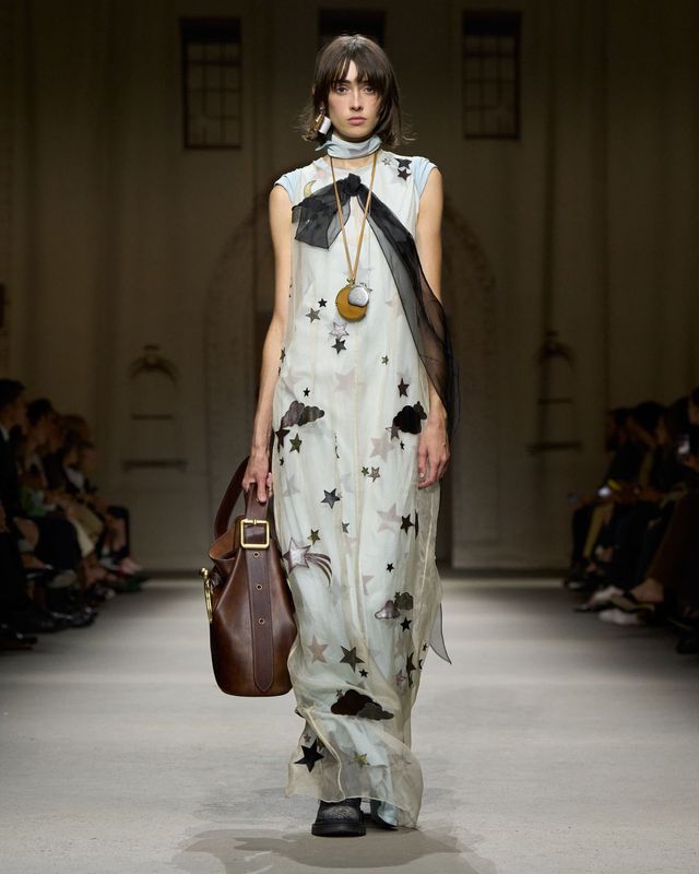 이번 컬렉션의 소재와 색감은 뉴욕이 던져주는 사소한 발견들에서 출발합니다. 인도에 버려진 카드, 전봇대에 붙은 스티커 같은 흔적들은 낡았지만 특별한 기억을 품은 도시의 단면을 상징합니다. 이러한 이미지는 패브릭 위로 옮겨져, 은은하게 바랜 듯한 톤과 광택으로 표현되었습니다. 스웨이드와 가죽은 표면의 질감을 그대로 드러나도록 가공해 시간의 흐름이 만든 깊이를 담았고, 메탈릭 디테일은 새것의 번쩍임이 아니라 오래된 표면에 깃든 빛을 그려냈습니다. 이 같은 시선은 액세서리에서도 이어졌습니다. 작은 봉투, 책, 로켓, 동전 모양의 펜던트는 도시 곳곳에서 발견되는 일상적 오브제를 그대로 옮겨온 듯한 모습으로 등장했죠.