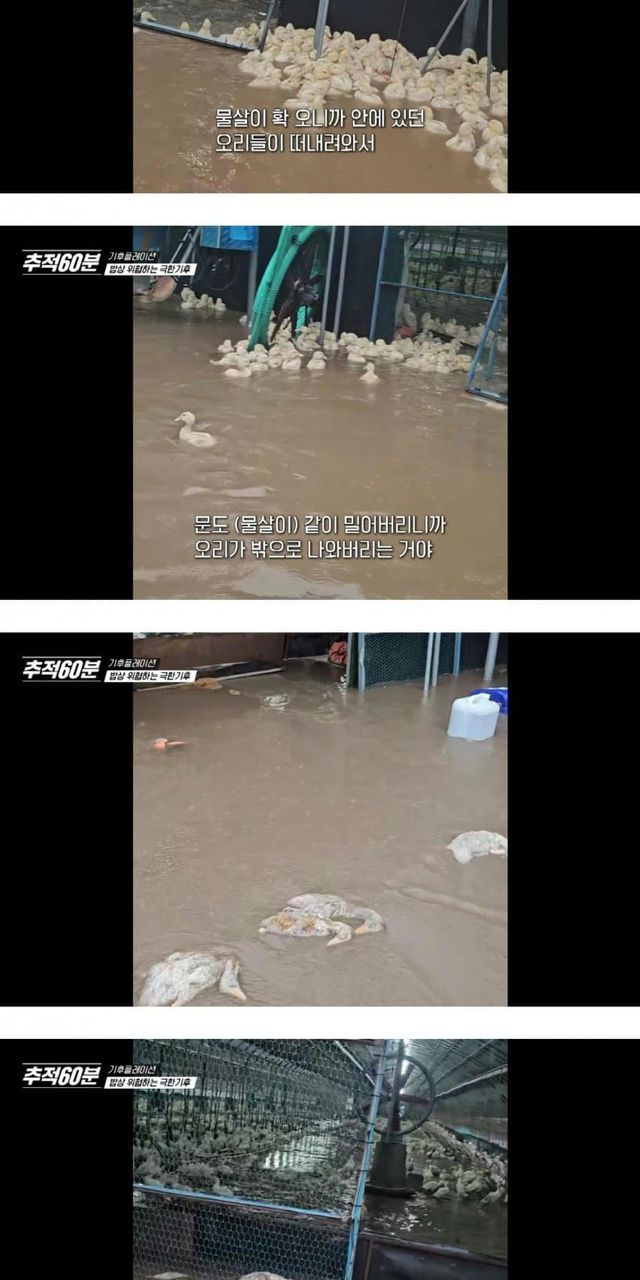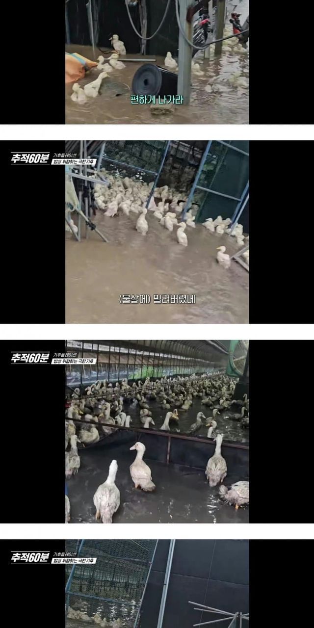 폭우로 오리 25000마리 중 6000마리가 폐사함