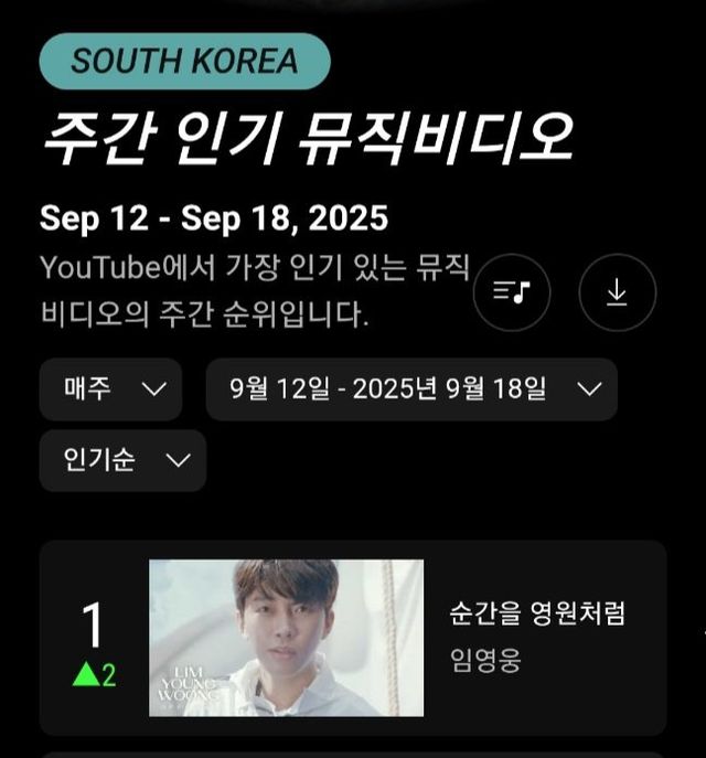 가수 임영웅이 뮤직비디오 차트 정상을 탈환했다.