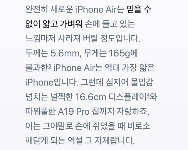 역대 가장 얇은 아이폰이라고 홍보하는 아이폰 에어... 근데 이거 손으로 힘주면 구부러지진 않을까?