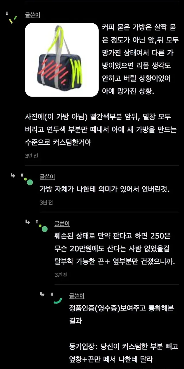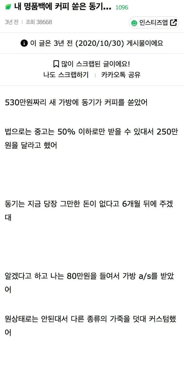 530만원짜리 명품백에 커피 쏟은 동기