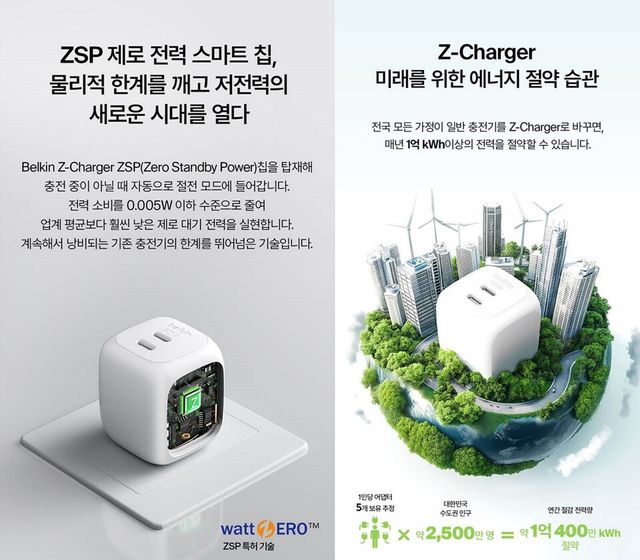 벨킨은 이러한 요구를 반영해 일본의 반도체 제조업체 ‘르네사스 일렉트로닉스(Renesas Electronics)’와 함께 ‘ZSP(Zero Standby Power)’기술을 개발하며 친환경 충전 솔루션을 선보였다.