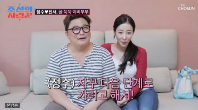 이후 윤정수와 원진서는 다정하게 뽀뽀를 했고, 키스에 대한 이야기도 자연스럽게 이어갔다. 원진서는 “키스는 오빠가 잘 안 해준다. 가끔 해준다”고 말했고, 이에 윤정수는 “키스를 하면 자꾸 다음 단계로 넘어가려고 해서 부담스럽다”고 말해 웃음을 자아냈다.