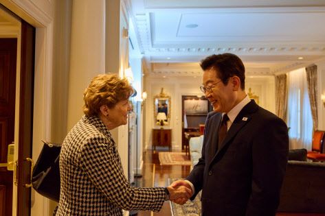 한반도 문제와 관련해 이 대통령은 “미국이 ‘피스메이커(중재자)’로 주도적 역할을 하는 것을 환영하며, 한국은 ‘페이스메이커(촉진자)’로서 이를 지원하겠다”고 밝혔다. 또 북미 대화 재개와 단계적 비핵화를 위해 의회의 협력을 당부했다. 미 의원들은 “북핵 문제 해결과 한반도 평화를 위한 노력을 지지한다”며 의회 차원에서 적극 협력하겠다고 약속했다.