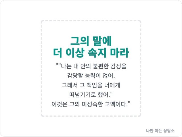 하지만 그의 그 말은, 사실 당신에 대한 평가가 아니다. 그것은 자신의 감정을 책임질 능력이 없는, 그의 취약한 내면을 드러내는 가장 명백한 고백이다.
