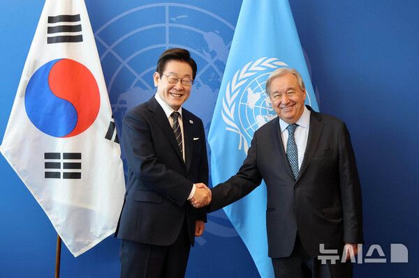 뉴시스 보도에 따르면, 미국 뉴욕에서 열리는 제80차 유엔총회에 참석한 이 대통령은 23일(현지시간) 오후 안토니우 구테흐스 유엔 사무총장과 면담을 가졌다.