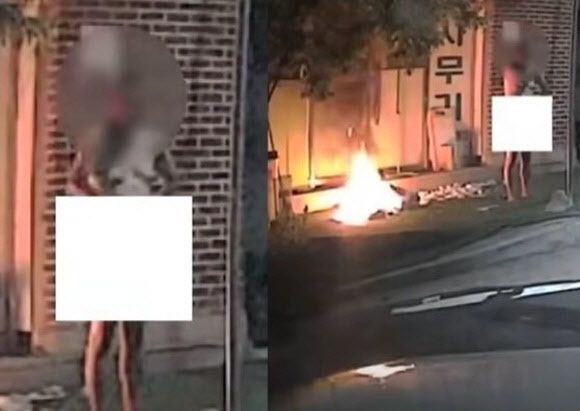 급히 불을 끄는 경찰관 옆에 태연히 알몸으로 서서 A씨가 이를 지켜보고 있던 것. A씨는 러버콘, 쓰레기 등과 자신의 옷에 불을 붙여 태웠던 것으로 확인됐다.