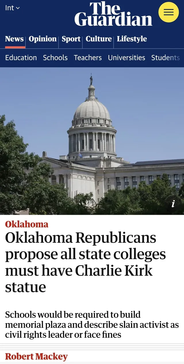 미국 오클라호마 주에서 벌어지고 있는 찰리 커크 우상화