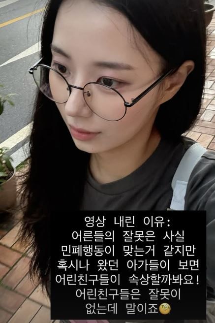 그러나 이 글은 삭제 처리됐다. 이후 최연수는 "영상 내린 이유: 어른들의 잘못은 사실 민폐 행동이 맞는 거 같지만 혹시나 왔던 아가들이 보면 어린 친구들이 속상할까봐요! 어린 친구들은 잘못이 없는데 말이죠"라고 삭제 이유를 설명했다.