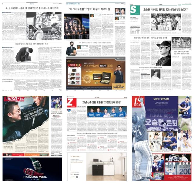 신문에는 단순한 기록의 의미를 넘어 활자 하나하나에 이야기가 담겨 있습니다. 지난 56년 동안 그래왔던 것처럼, 일간스포츠는 21년 동안 프로야구에서 활약한 오승환을 주목하고 '끝판대장'의 스토리를 활자에 꾹꾹 눌러 담아 독자들과 공유했습니다. 올 시즌을 끝으로 은퇴하는 오승환의 길고, 멋진 여정을 일간스포츠가 옛 신문 기사를 통해 돌아봤습니다. 신문이 묻고, 오승환이 답하는 형식입니다.