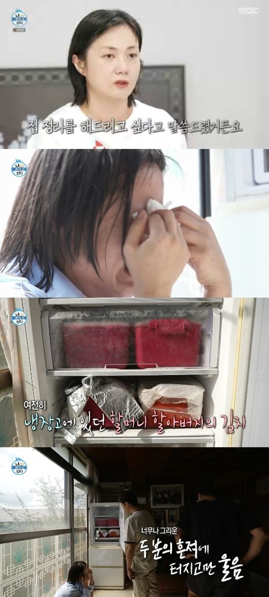 박나래는 냉장고 안을 살펴보다가 할머니 김치를 보고 그대로 울음이 터졌다. 박나래는 "이게 감당이 안 된다"고 했다.